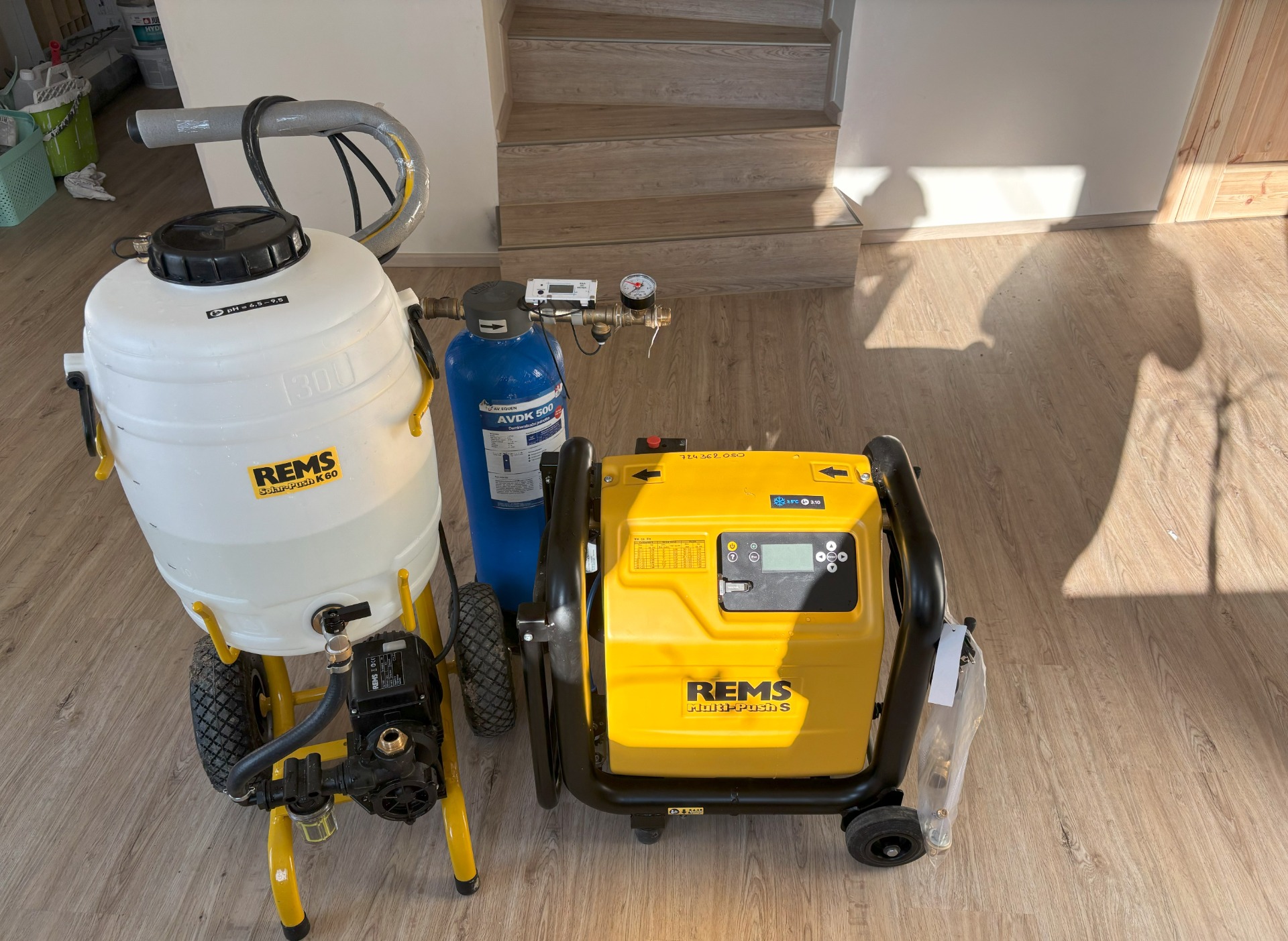 Zajištujeme odborné plnění podlahového topení DEMINERALIZOVANOU vodou pomocí profesionální plnící a ovzdušˇˇnˇovací stanice REMs.